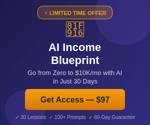The AI Income Blueprint is a 30-day program that teaches exactly this — going from AI-curious to AI-profitable.